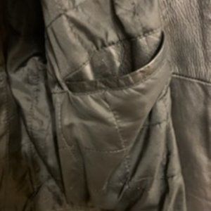 3 front zippers, zipper on sleeves snap pocket, inside pocket, belt,side leather ties