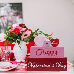 🧿💝【Valentines Day Decor】- DECSPAS valentines day decoration features two rectangular blocks in colors of pink and red spelling “Happy Valentine’s Day” and three adorable hearts ornaments with festive words. Raised design makes these valentines decorations more textured. Add a layer of sophistication and character to a space without overpowering. With tenderhearted affection wafting through the air, finish up your home with this indoor valentines day decor to express your burning love!