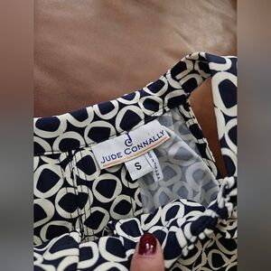 JUDE CONNALLY Lisa Dress Halter Keyhole Sleeveless Travel Navy Cream Small USA