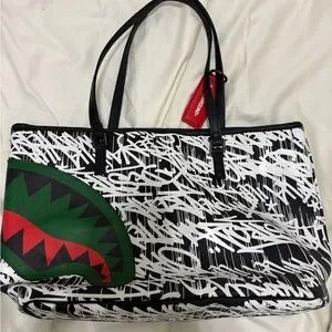 Authentic Sprayground Limited Edition tote bag featuring a bold black and white graffiti design. Pre-owned but in like new condition with no noticeable flaws. Spacious, stylish, and perfect for everyday use, travel, or work.