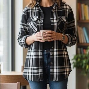Women’s Lauren Ralph Black and White Wool Plaid Shirt