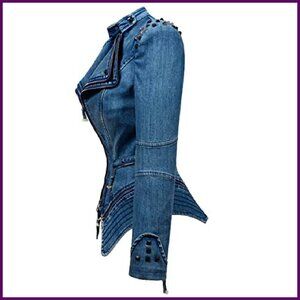 • Style: A classic denim jacket with a modern twist, featuring rivet inlays at the shoulder and waist, a double zipper closure, and a distinctive dovetail back design.
