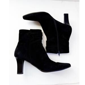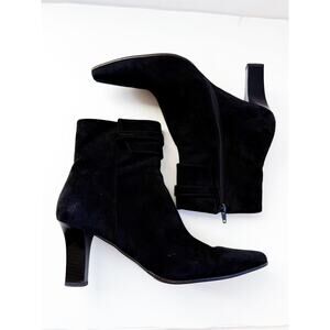 VTG 90s Salvatore Ferragamo Molly Black Suede Heeled Ankle Boots Womens 9.5