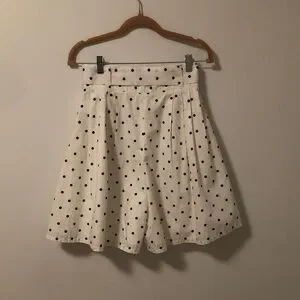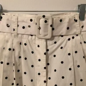 Stylish vintage white shorts with black polka dots. Features a high-waisted design and a belt.