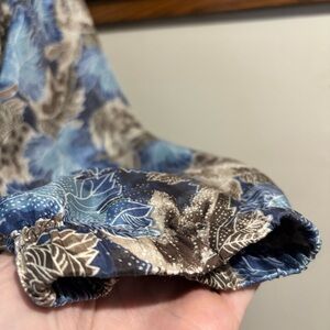 Stylish button-up jacket with a floral pattern in blue and brown. Perfect for adding a pop of color to your outfit.