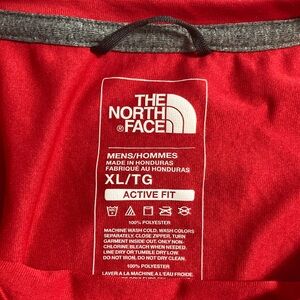 THE NORTH FACE Dri fit red t shirt with black logo on front
