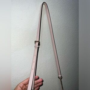 In excellent preowned condition. Clean inside & out. Light pink/blush color with gold hardware. Lightly used. Perfect color for upcoming spring/summer. Pairs beautifully with many outfits. Width measure 9.5 inches and height measures 7 inches approximately. Open to offers. Please reach out with any questions!
