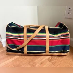 Stylish and spacious duffel bag with vibrant stripes. Perfect for travel or gym use.