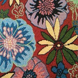 Super cute retro inspired mini skirt. Pretty multi colored flowers on a burgundy background. Fully lined,back zip. 30 at waist, 42 at hips, 16.5 long from waist to hem. Please see measurements. I'm calling this a size 10. Enjoy this step into the 60's, and have FUN!
