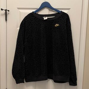 Chic fleece black sweatshirt with subtle leopard pattern. Features iconic Nike logo. Ideal for everyday style.