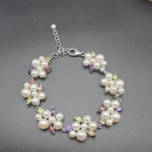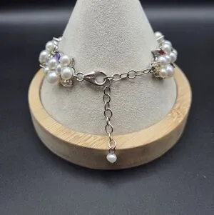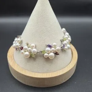 Ross Simons Pearl and Gemstone Bracelet. 7.5 inch with 2 inch extender. Stamped RS 925 China