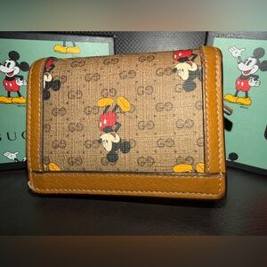 GUCCI X Disney Brown GG Mickey Mouse Wallet ,Box, cards, dust bag and COA
