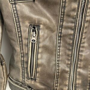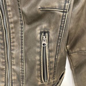 Stradivarius Vintage Style Vegan Leather Moto Jacket Size XS