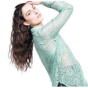 Wildfang The Empower Lace Button Up, Mint Green Sage, Plus Size 3XL, NWT. This is a modern take on a classic button up. It features an intricate sheer lace body that balances a delicate texture with a structured silhouette. 74% nylon, 26% viscose. Full button down with color match branded buttons, classic pointed collar, long sleeves with button cuffs, sheer construction, curved shirt tail hemline. new with tags. #PlusSize #Lace #MintGreen #SheerTop