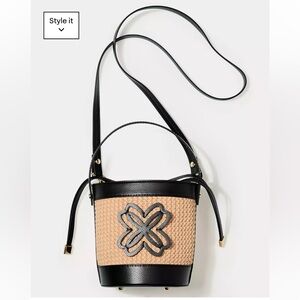 NWT Lilly Pulitzer Malia Raffia Bucket Bag Elegant Black and Tan Bucket Bag