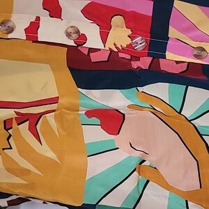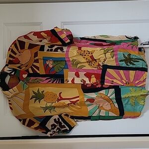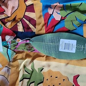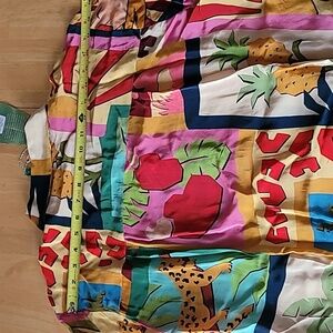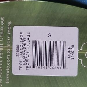 FARM Rio Tropical Collage Pajama Shirt Silky Viscose Blouse, Size S
