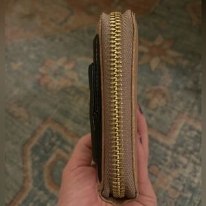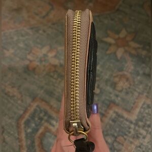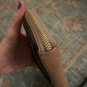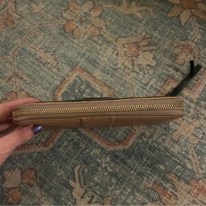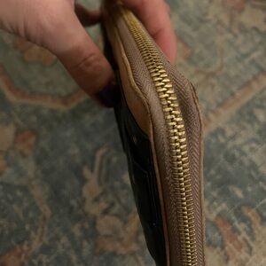 Purchased but never used. Gorgeous design with buttery soft leather. Has some normal wear on the leather and corners, nothing major though. Gorgeous design, can be used as a wallet or the hand can be slipped under the oversized bow to wear as a clutch. 🎀