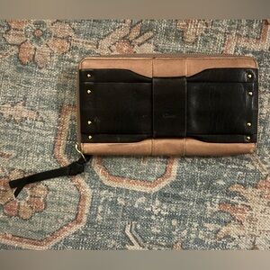 CHLOE Bow Wallet Clutch Leather Zippy Black & Mauve Pink