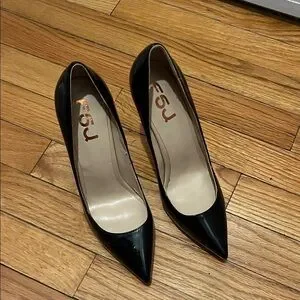 FSJ Black Patent Leather High Heels Office Pointed Toe Pumps Shoes