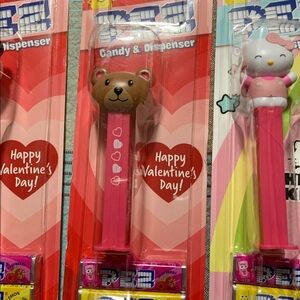 Valentine Themed Pez Candy & Dispensers -New. Group of three. Panda Bear, Brown Bear, and Hello Kitty. Sealed in original packaging. Expiration date is 11/25/29 or 12/4/2029. Please see pictures.
