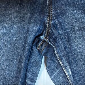 J Brand Skinny Leg Jeans, size 31. Style 811C032, Heritage wash. Cut 6385. Premium denim is 92 cotton, 7 polyester, 1% spandex for a bit of stretch. Has 5 pockets. Rise 10", Inseam 29.25", waist 18" side to side, laying flat. Leg opening at bottom 6.25" across, laying flat. Soft comfortable denim, feels like your favorite jeans with a "broken in" feel. NOTE: There is wear between thighs at very top of legs as shown in photos. Also a small fray adjacent to inner seam near ankle of left leg, shown with arrow in photos. These jeans originally retailed for $189. Due to these wear issues they are priced accordingly. They show wear but definitely have plenty of life left in them. Ships promptly from non-smoking home. (8449)