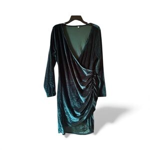 This stunning velvet wrap dress features a deep teal color, perfect for any special occasion. The luxurious fabric and flattering design make it a must-have addition to your wardrobe. NWOT
