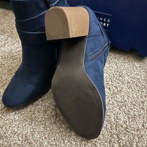 Elevate your look with these stylish navy booties. Features a sleek design and comfortable fit.