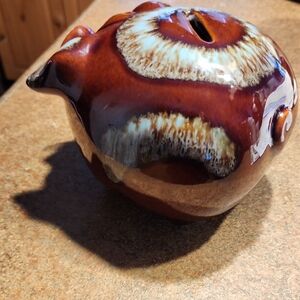 Charming vintage ceramic piggy bank featuring a rich brown and cream design. Perfect for adding a touch of nostalgia to your home decor.