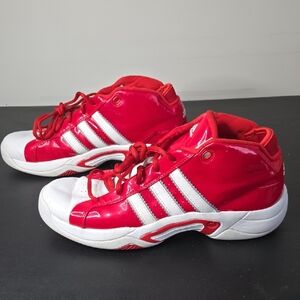 Vibrant Adidas sneakers for kids. Bright red with white accents. Ideal for play and daily wear.
