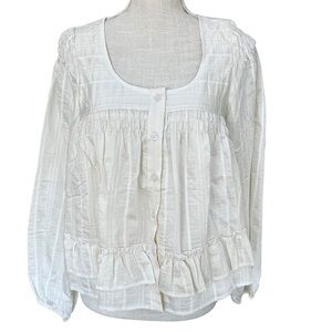 Ruffle Hem Peasant Blouse in Ecru