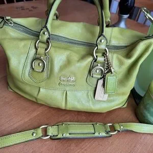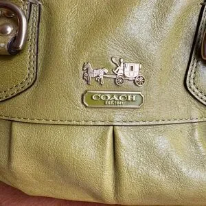 Coach Green Leather Satchel with Gold Accents