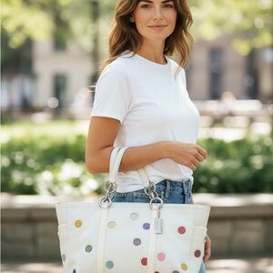 Coach RARE White Tote with Colorful Polka Dots from 2004