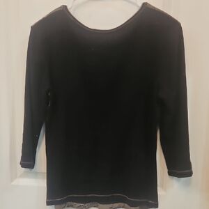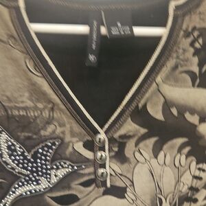 New Directions Black and Tan Graphic 3/4 Sleeve Blouse