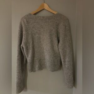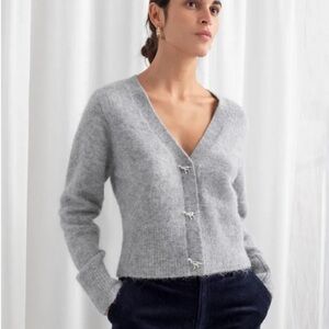 & OTHER STORIES Gray V-Neck Cardigan Alpaca Wool Blend Dinosaur Snap Buttons