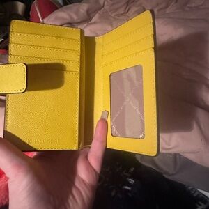 Bright yellow Michael Kors wallet. Sleek and modern design. Perfect for daily use.