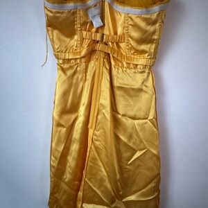 Brighten your wardrobe with this elegant yellow spaghetti strap dress. Perfect for any occasion, this dress offers a flattering fit and a vibrant color that stands out.