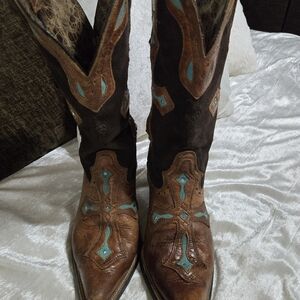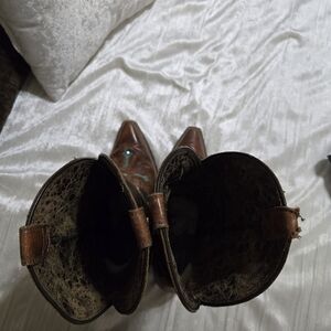 Step out in style with these stunning brown suede and turquoise western boots. I purchased these on Poshmark and never wore. They look practically brand new! The pull up strap on the right boot shows some wear. Other than that..these are in beautiful shape and the bottoms look barely worn!