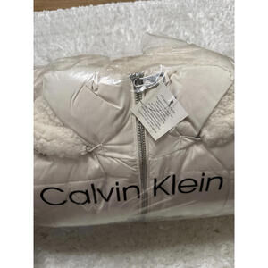 NWT! Calvin Klein Faux Shearling Lined Down Puffer Jacket in Eggshell Size Small