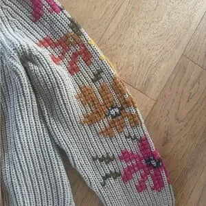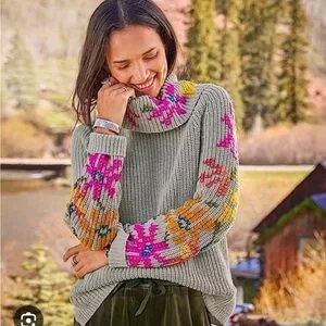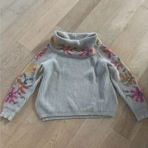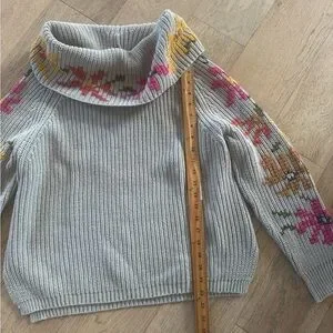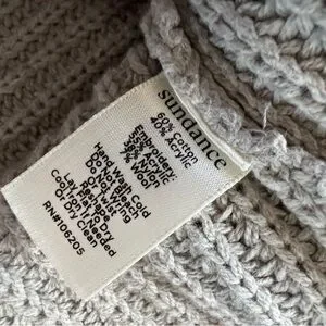 Chic cowl neck sweater by Sundance. Features vibrant pink and orange patterns on sleeves. Perfect for a stylish look.