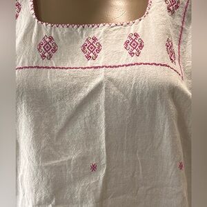 Artisan made cross stitched Embroidered White and Pink Women's tunic top