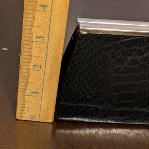 This is a must have small clutch bag. It's the perfect accessory for carrying only your essentials. The exterior material is made of faux leather, and it comes with a optional chain for easy carrying. It's only been used a couple of times.