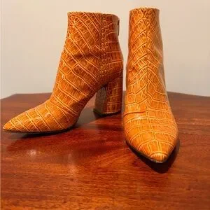 Vince Camuto Croc Embossed Block Heel Booties 6M