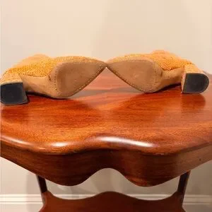 Add a fierce finish to your fall fits with these Vince Camuto pointed-toe booties in a stunning warm cognac hue. Featuring a croc-embossed leather upper, bold block heel, and sleek rear zip closure, these boots are equal parts edgy and elegant. Style them with jeans, sweater dresses, or wide-leg trousers for instant polish.