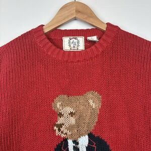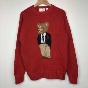 Vintage Sears Roebuck "Polo" Bear Sweater Mens M Red Chunky Grandpa Core