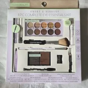 Discover the Clean Beauty Eye Essentials Kit, featuring a stunning gold and brown eyeshadow palette. Perfect for creating versatile eye looks with ease.