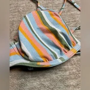 Women's Small Underwire String Bikini Top Colorful Shimmer Stripe Padded Sexy