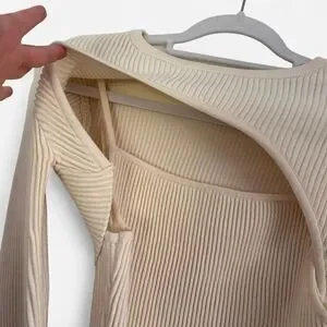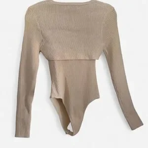 Restyled Cream Ribbed Knit Layered Bodysuit + Half Sweater Set – Size 6 / M 🤍✨