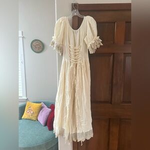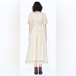 I actually bought this from Unique Vintage, but they no longer carry this style. Fits pretty true to size with the adjustable laces in the back for a tighter fit. All the detail is so pretty and it's made of breathable cotton!