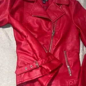 Bold red leather jacket by a.n.a. Features sleek zipper details. Perfect for a stylish look.
