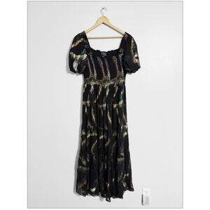 Shoshanna Midnight Atly Puff Sleeve Shimmer Maxi Dress
